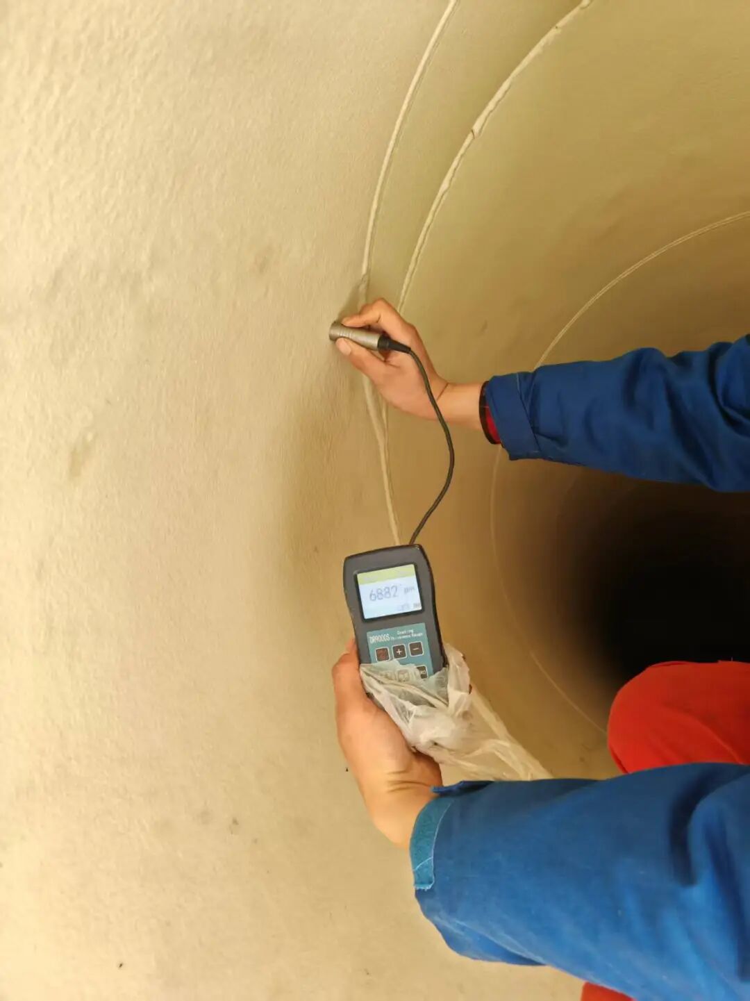 2.喷涂作业:运用饮用水安全标准的聚氨酯材料,通过喷涂设备均匀覆盖管壁,形成6mm左右厚度的致密内衬层;